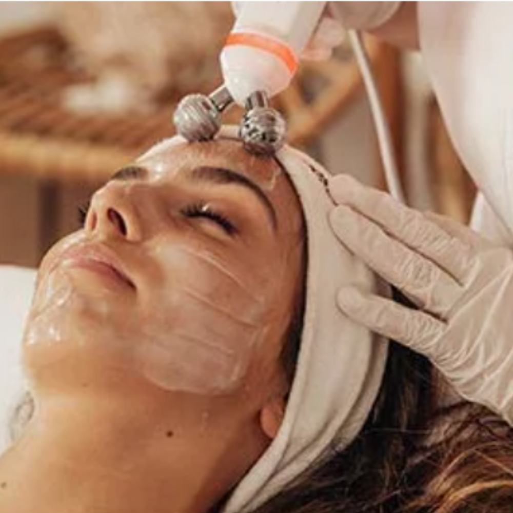 Application d’un **masque au collagène** pour repulper la peau et renforcer sa structure, suivie d’un **sérum concentré** ciblant la fermeté et la densité cutanée.
